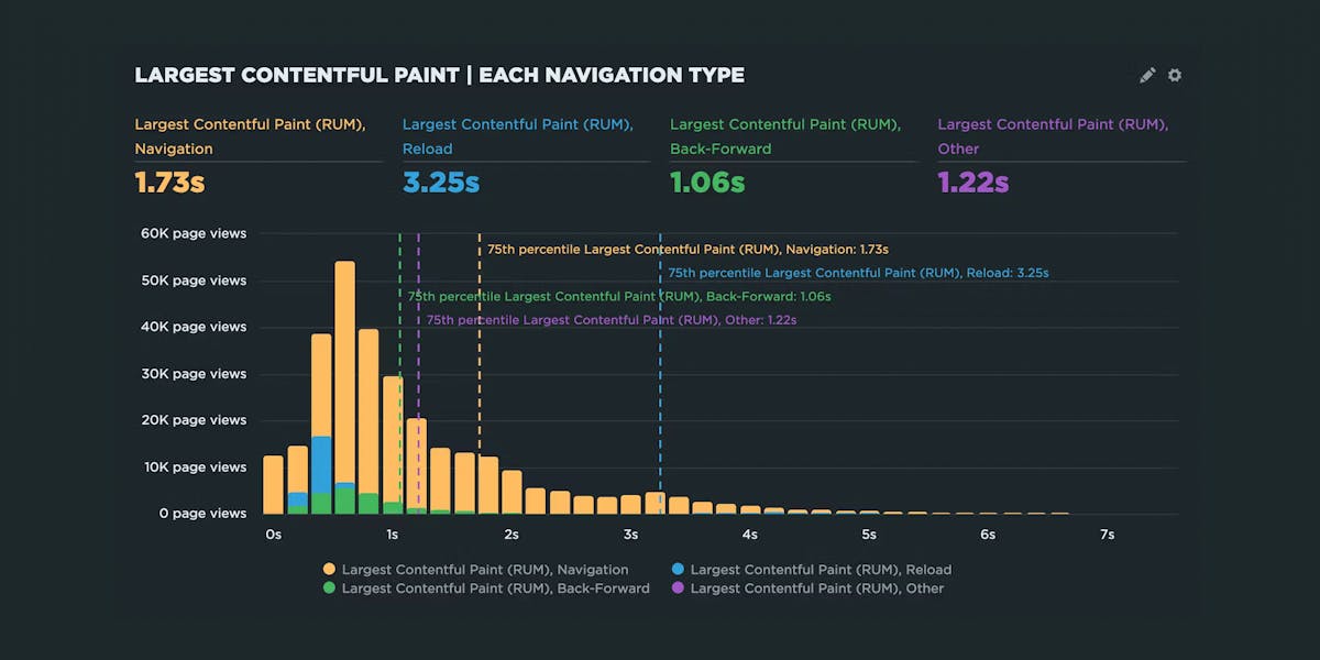 Page Speed Benchmarks is an interactive set of dashboards that anyone can explore and use for their own research. Every day we run a synthetic test for the home pages of industry-leading websites and rank them based on how fast their pages appear to load from a user’s perspective. You can filter the dashboard to rank sites based on common web performance metrics, such as Start Render, Largest Contentful Paint, Cumulative Layout Shift, Time to Interactive, and more.