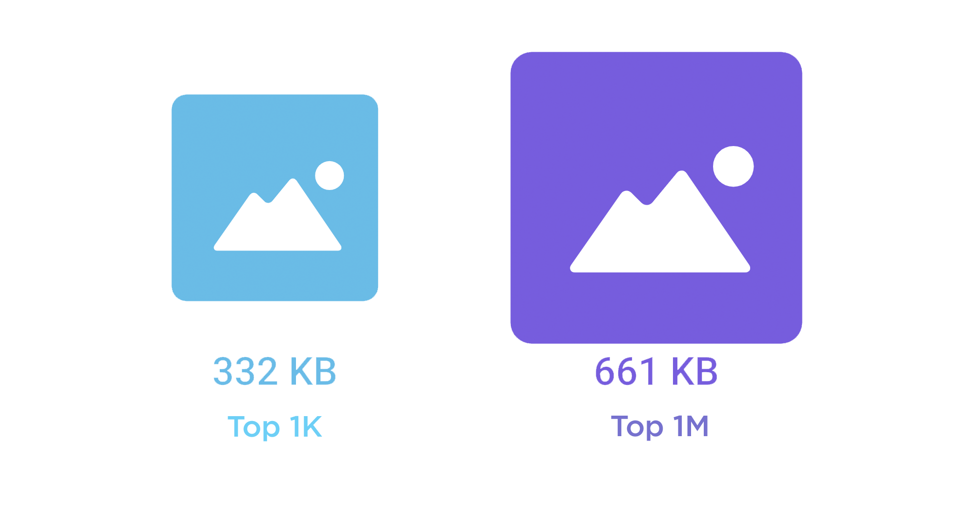 The top thousand pages tend to belong to leading sites. Those businesses perhaps have more awareness of the importance of performance optimization, along with the resources to monitor and tackle performance issues. This might be why the top 1K pages – across desktop and mobile – tend to be smaller and leaner.