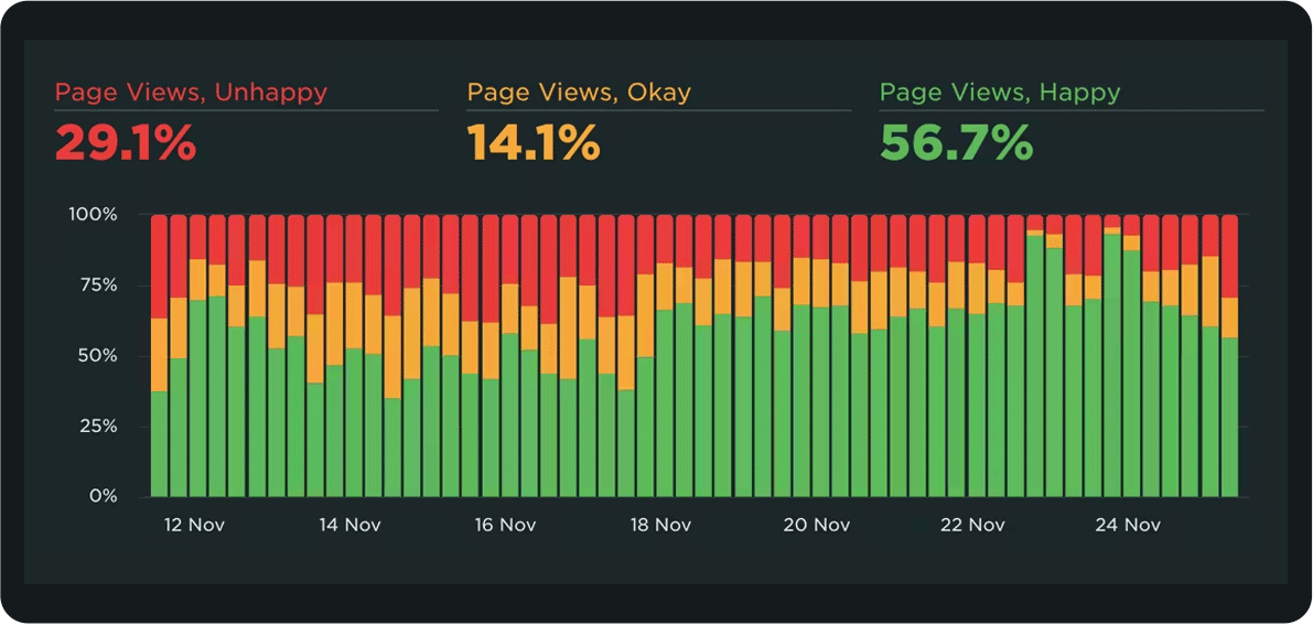 We pioneered User Happiness six years ago, when a number of our customers asked us if there was a RUM equivalent to the synthetic Lighthouse score. In other words, what they wanted was a single *non-technical* UX metric that everyone in their company could rally around.