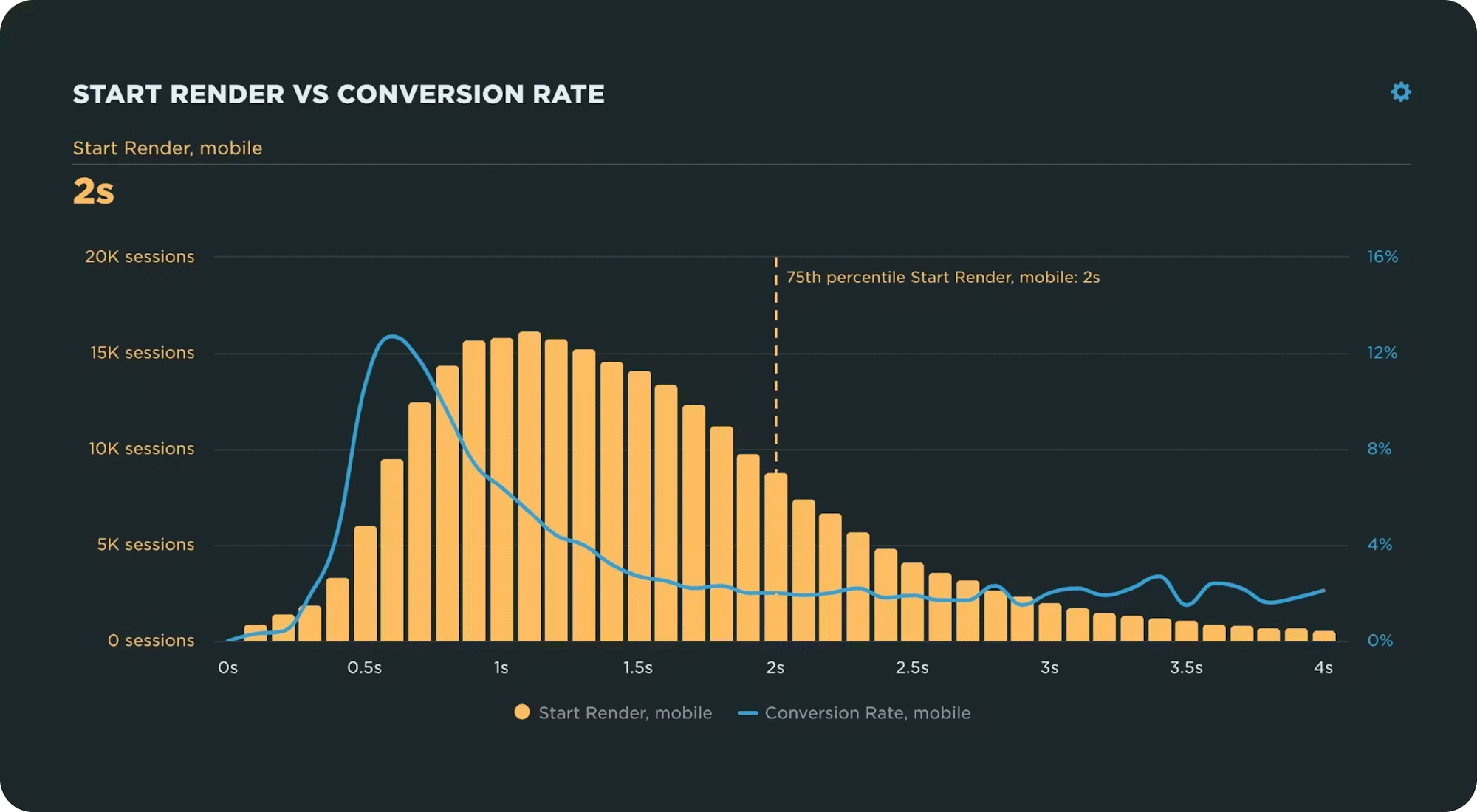 - Measure the impact of slow pages on your business (such as the correlation chart pictured above, which shows how conversion rate gets worse as pages get slower)