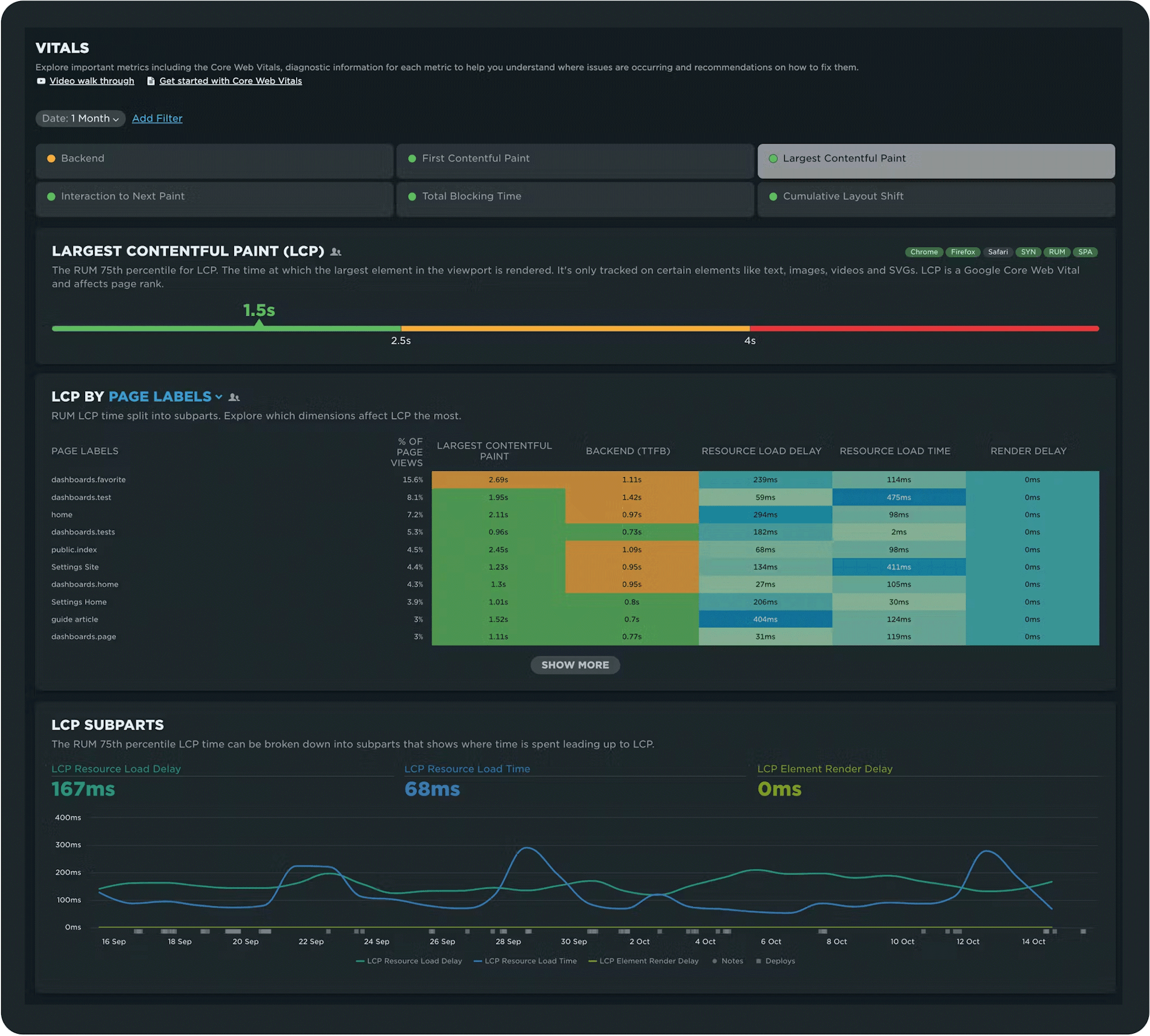 - New metrics, including Total Blocking Duration, available throughout your dashboards