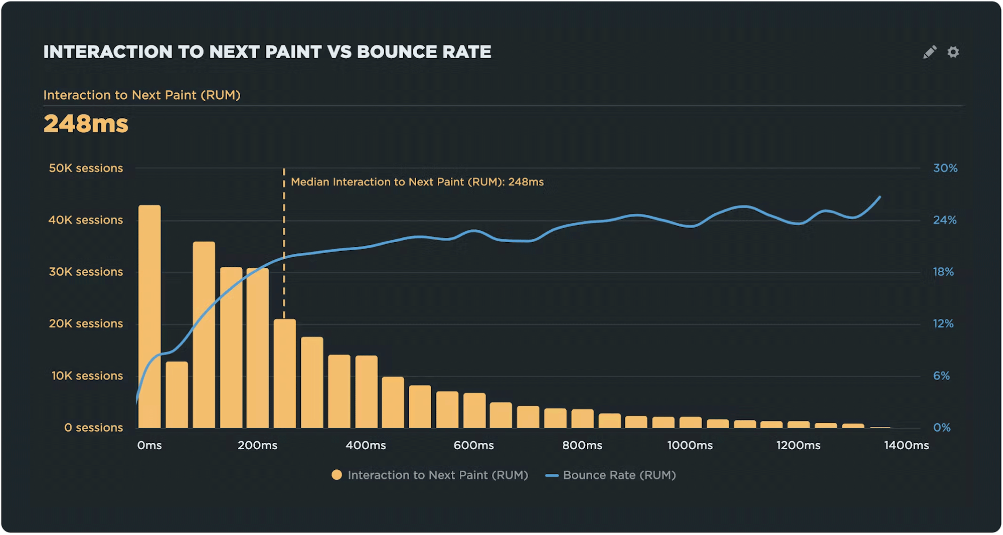 RUM data also lets you correlate performance data to business and user behavior metrics, such as conversion rate and bounce rate. This is absolutely critical to sustaining a long-term focus on performance at any organization.