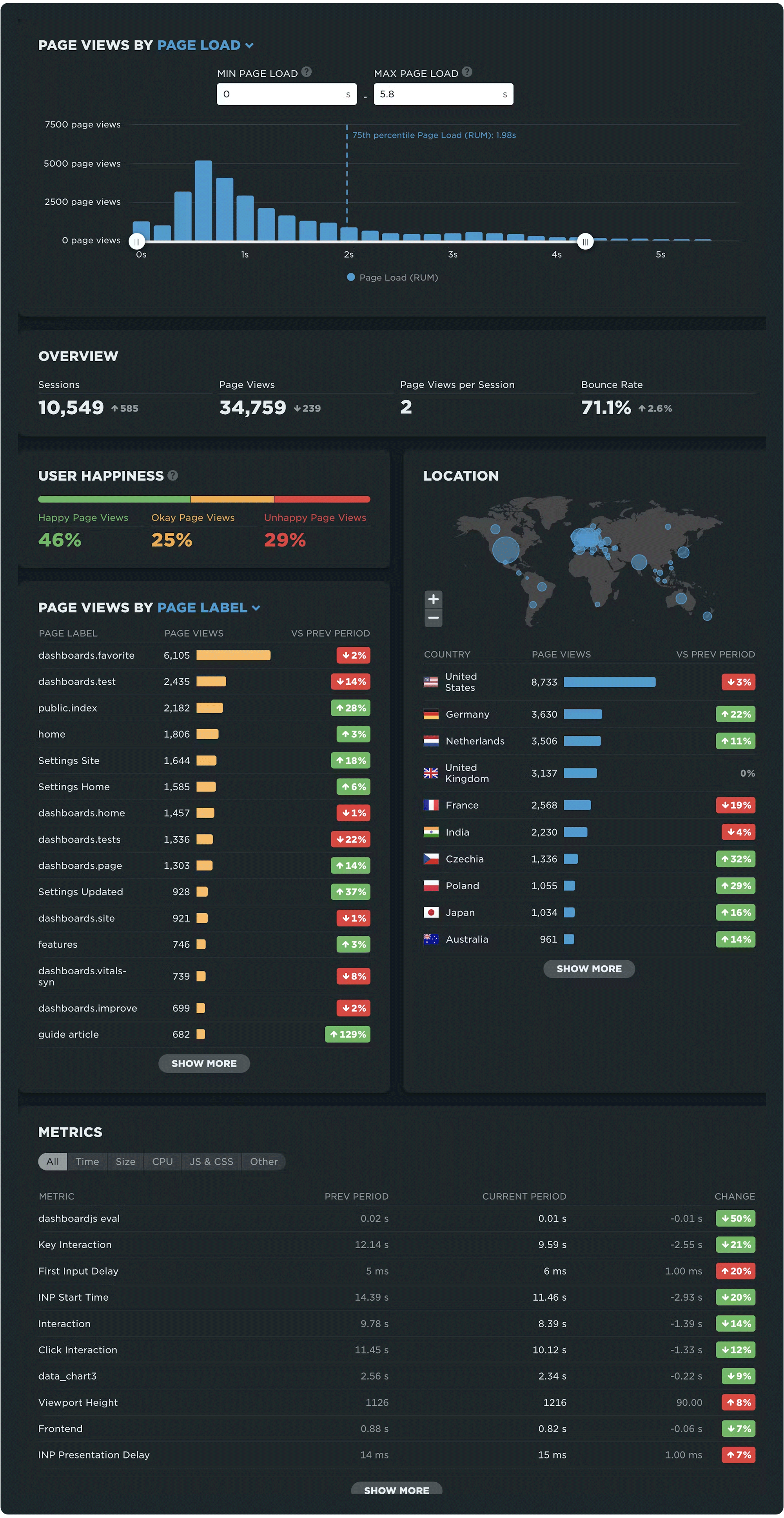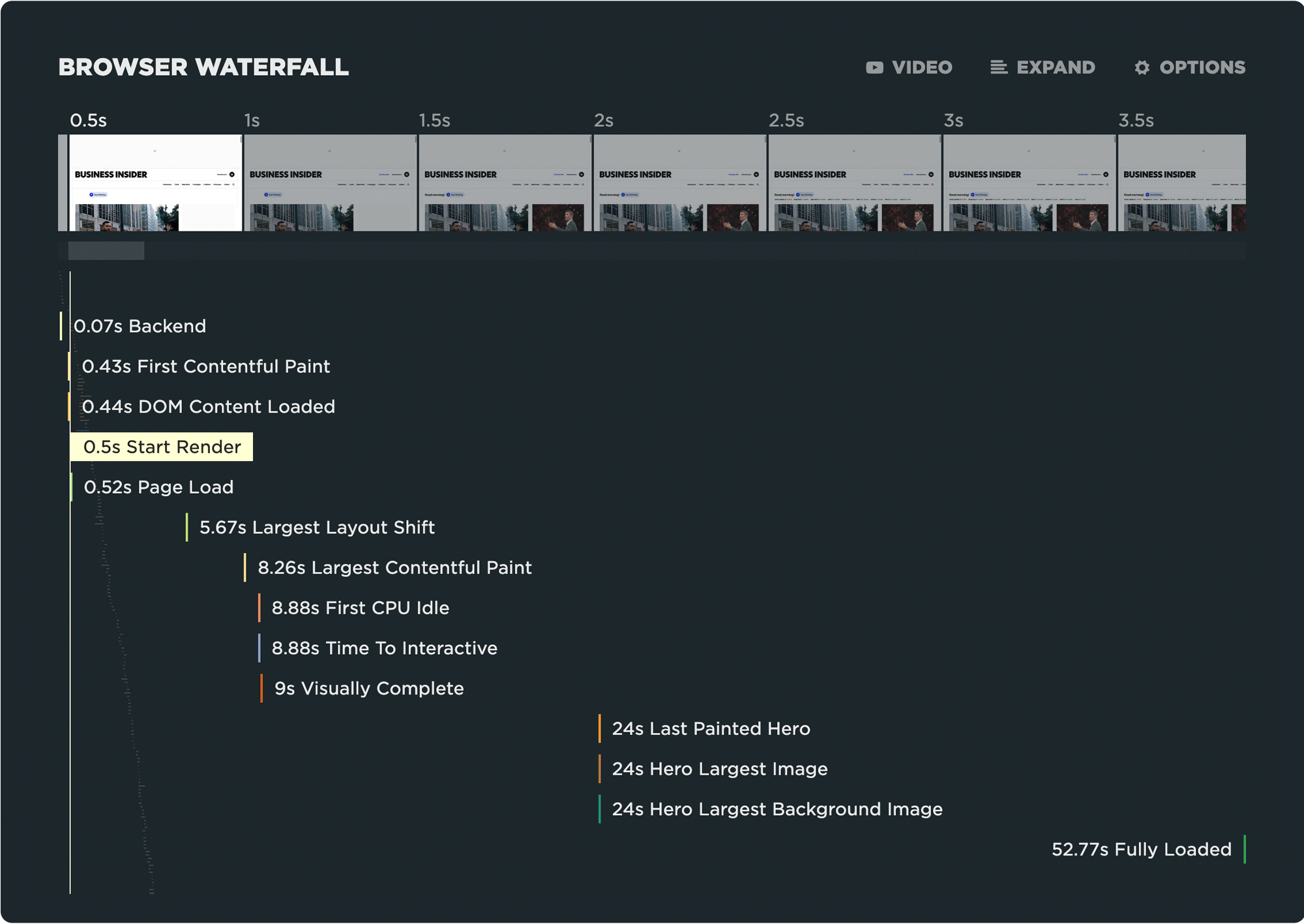 Because synthetic data is so controllable and repeatable, you have a very clean set of data to look at. This makes it easy to spot regressions and improvements. You can also capture a ton of detail on each test, empowering your teams to dig deep into understanding exactly what is going on in their pages.