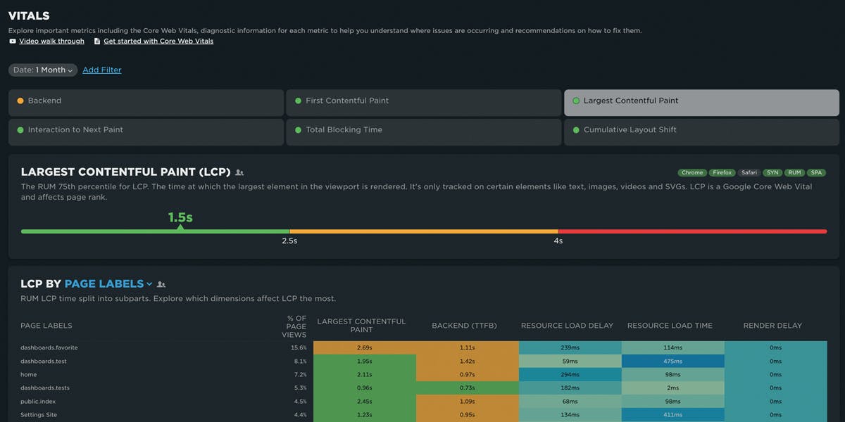 To provide a baseline when upgrading browsers, Lighthouse, or other components of our agents, we regularly measure the speed of more than 200 sites in both our production and pre-production environments.