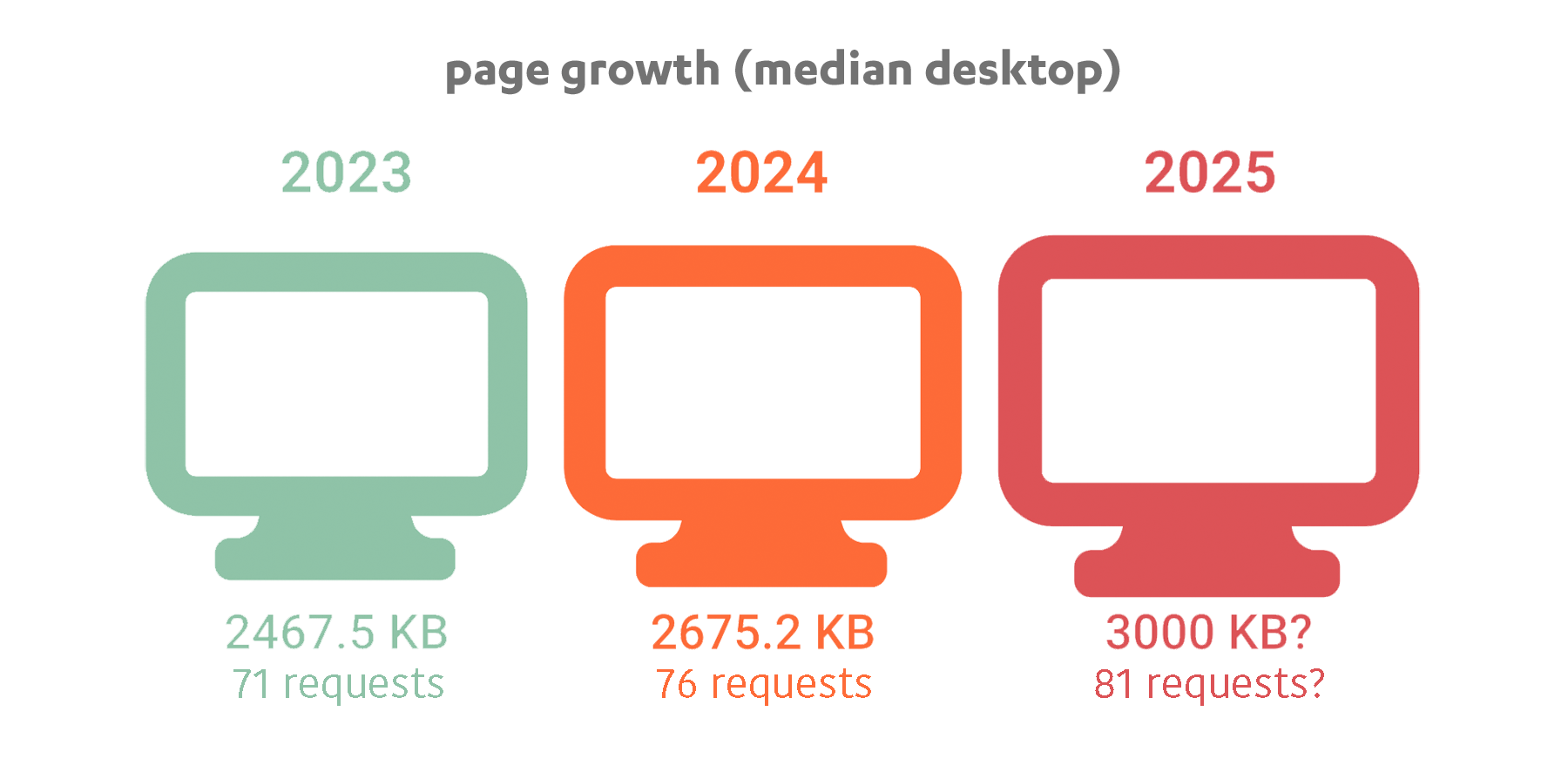 The median web page is 8% bigger than it was just one year ago. How does this affect your page speed, your Core Web Vitals, your search rank, your business, and most important – your users? Keep scrolling for the latest trends and analysis.