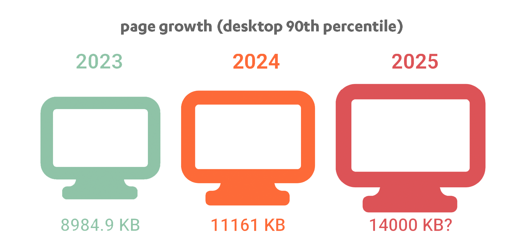 A 10% year-over-year increase in JS size is something to take note of. All in, JS weight has increased by 28% since 2022.