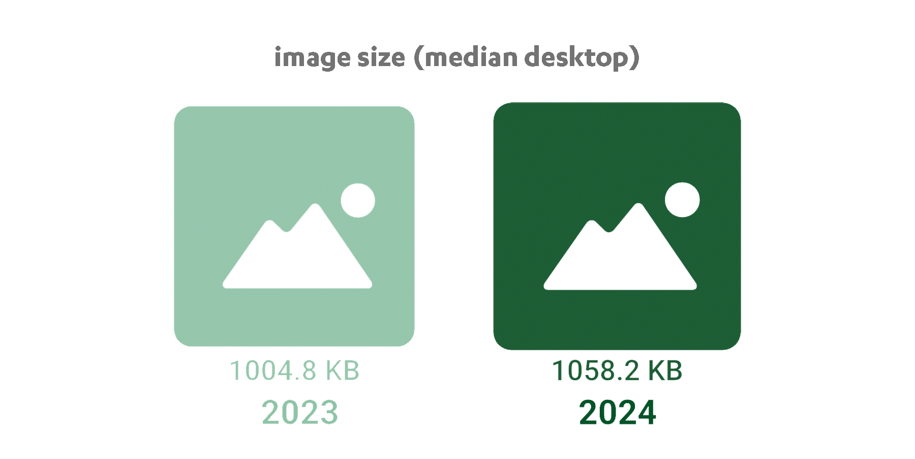Still, it's important to keep in mind that 1058 KB of image weight represents roughly 40% of the total weight of the median page. Improving image optimization and rendering best practices could have a noticeable impact on page speed.