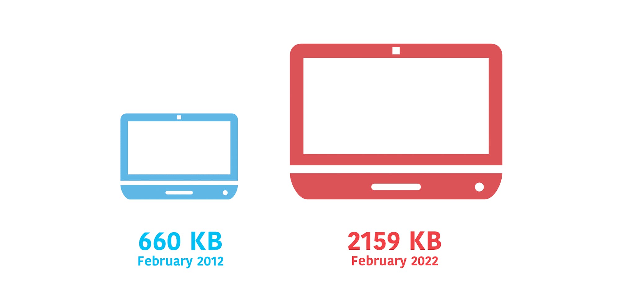 As someone who's been watching these numbers for more than ten years, this growth doesn't come as a surprise. The median size of 2159 KB is about what I expected to see, given how many pages I inspect in any given week that are much larger than this.