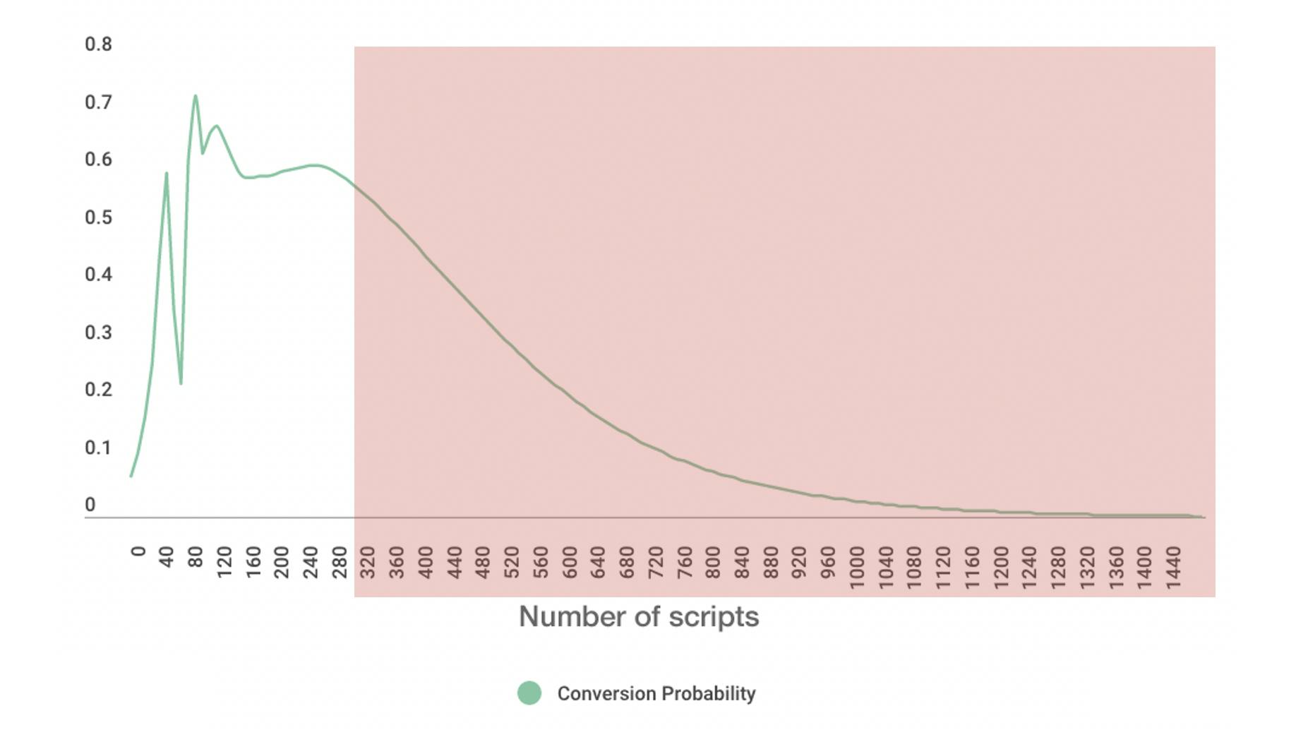 We also found that the more scripts there were in a series of pages in a session, the less likely that session was to convert.