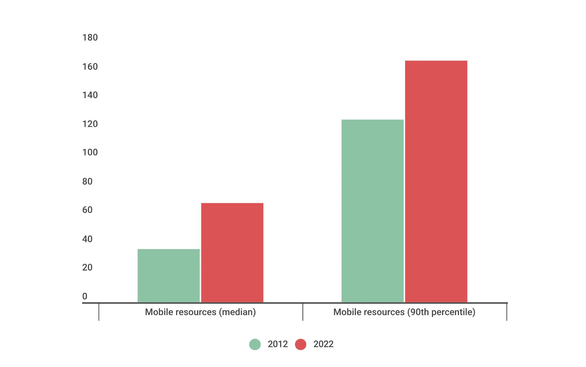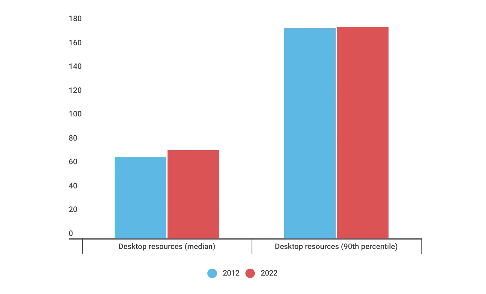 - These numbers all come from the HTTP Archive. It's important to mention that there have been changes to how the Archive collects data over the years. Having said that, looking at data over the past ten years, it's safe to make the observation that pages are definitely trending bigger.