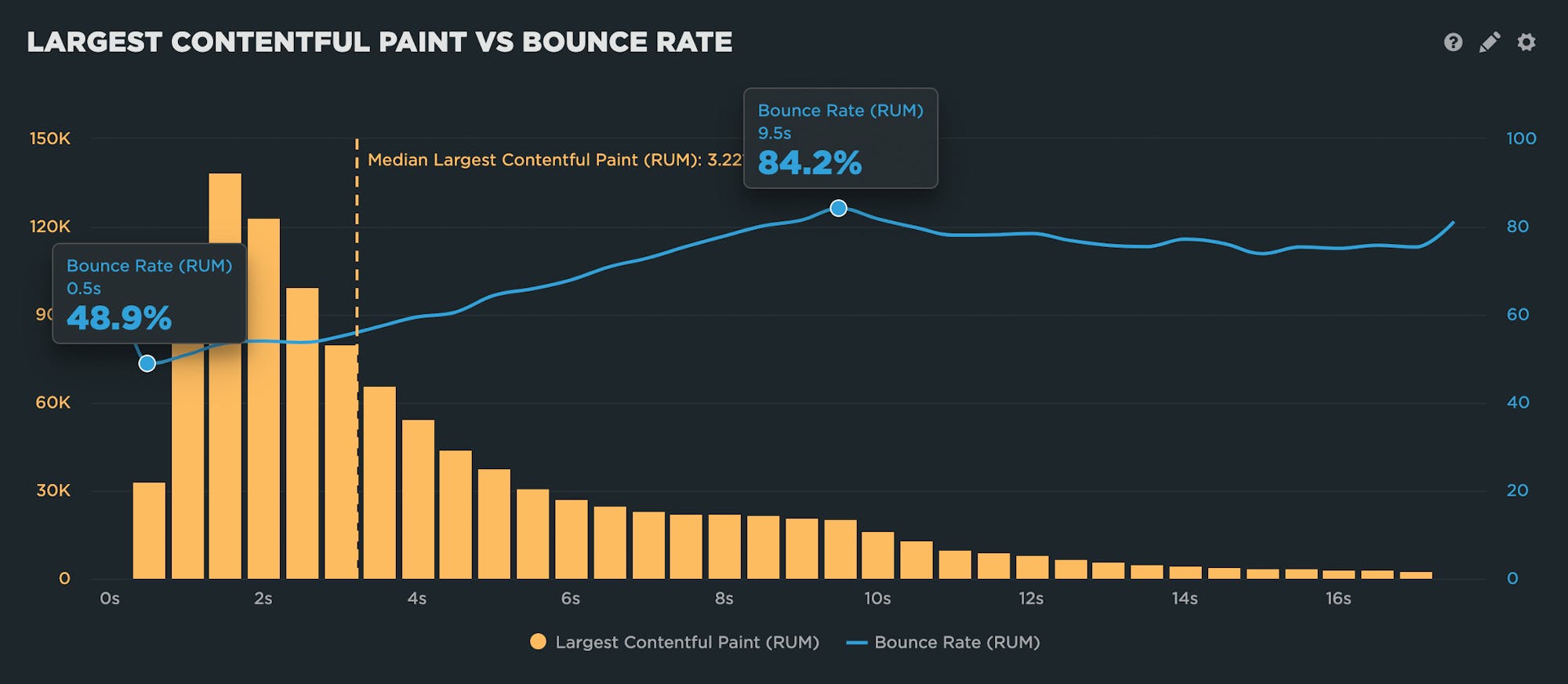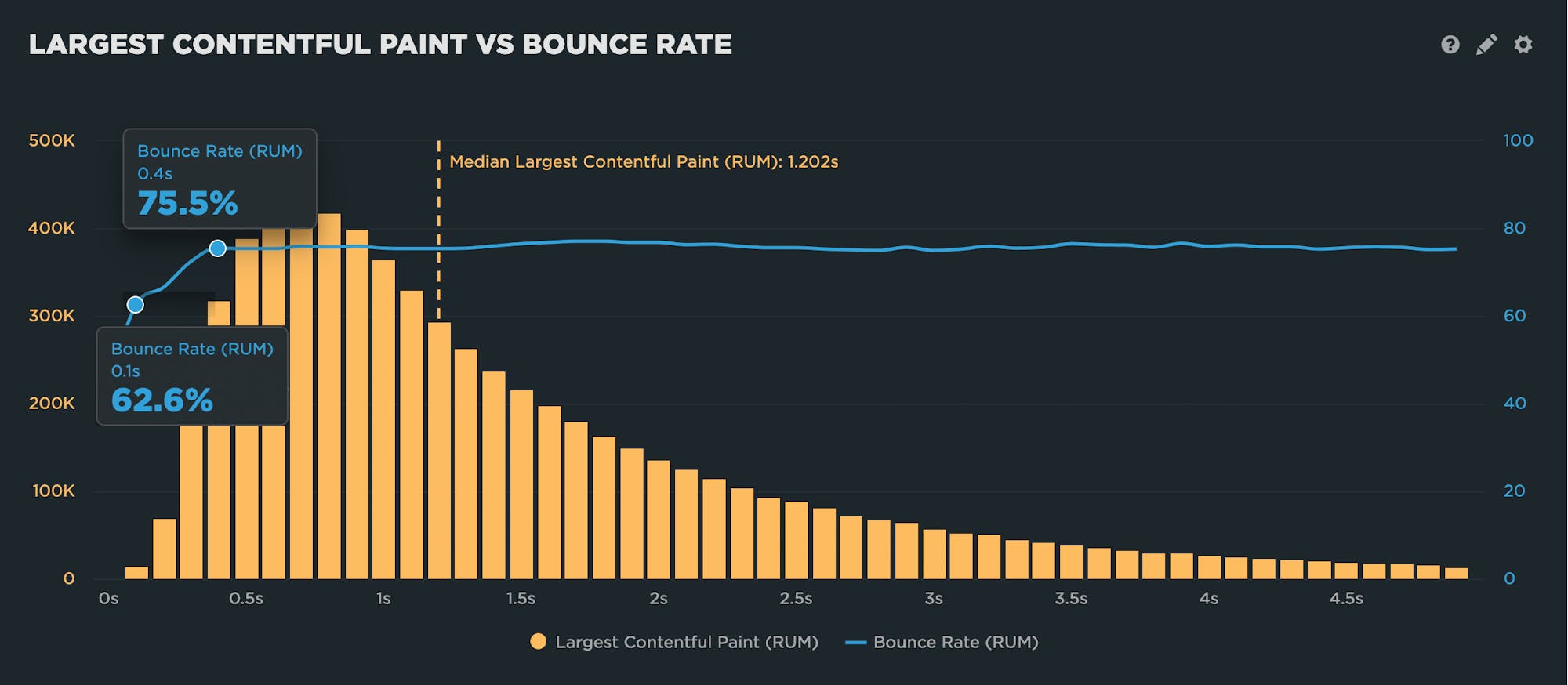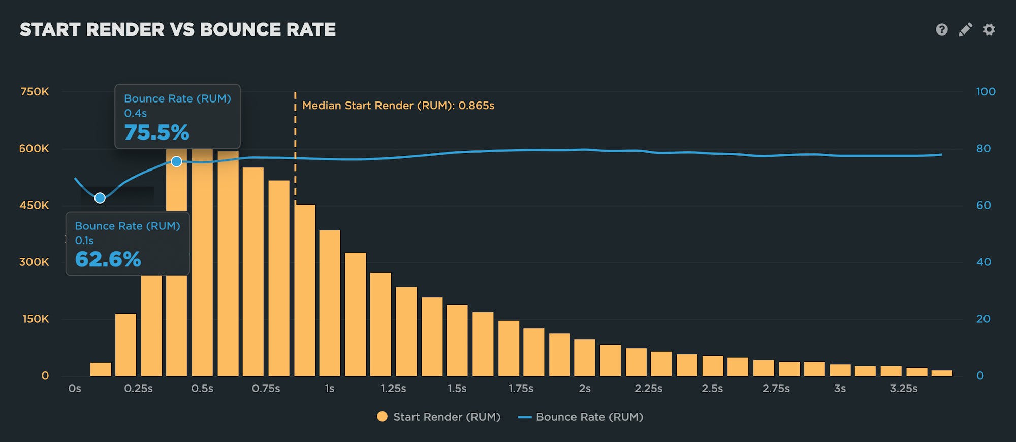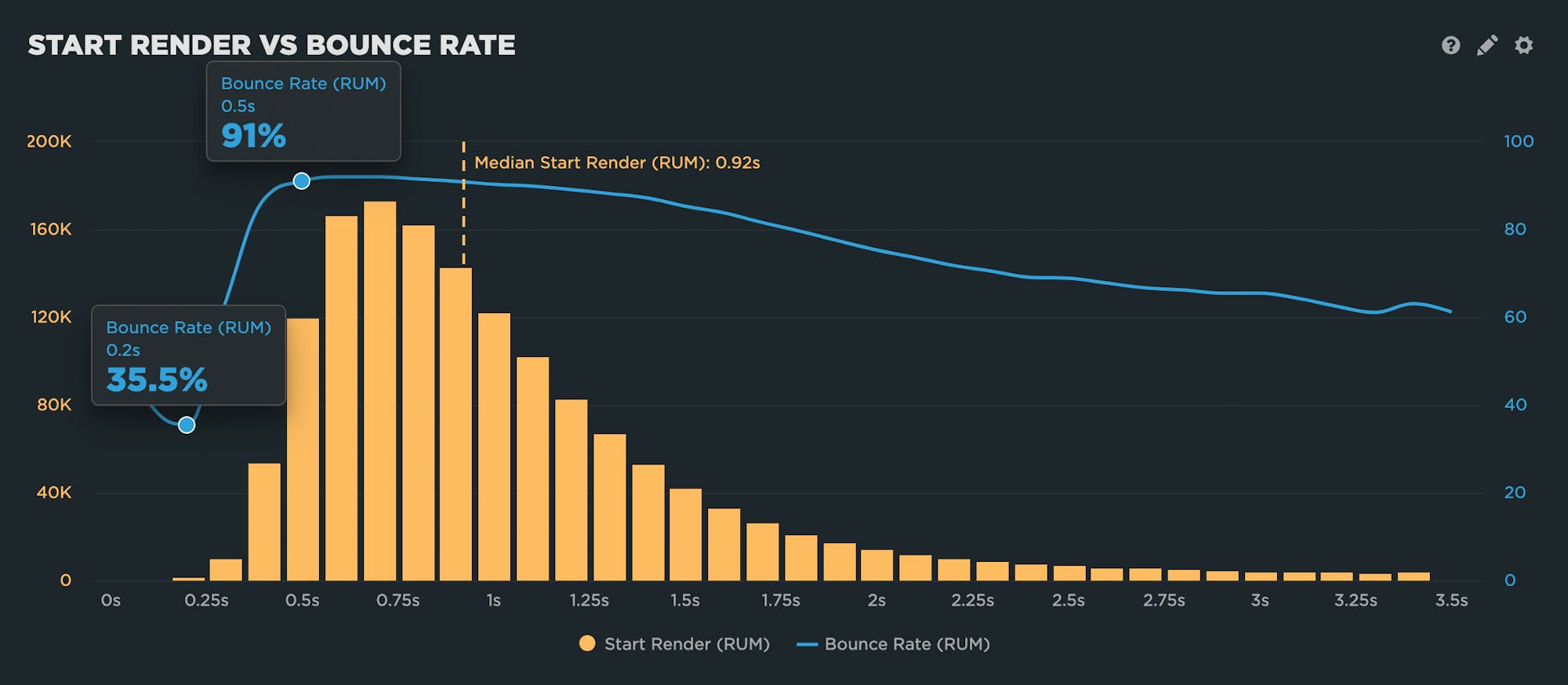 (You can also create correlation charts that show the relationship between performance metrics and business metrics, such as conversion rate and cart size, but bounce rate is easier to measure right out of the box with most RUM tools.)