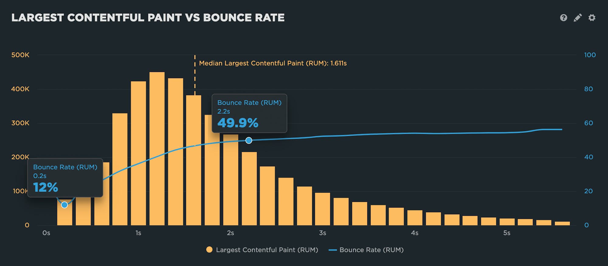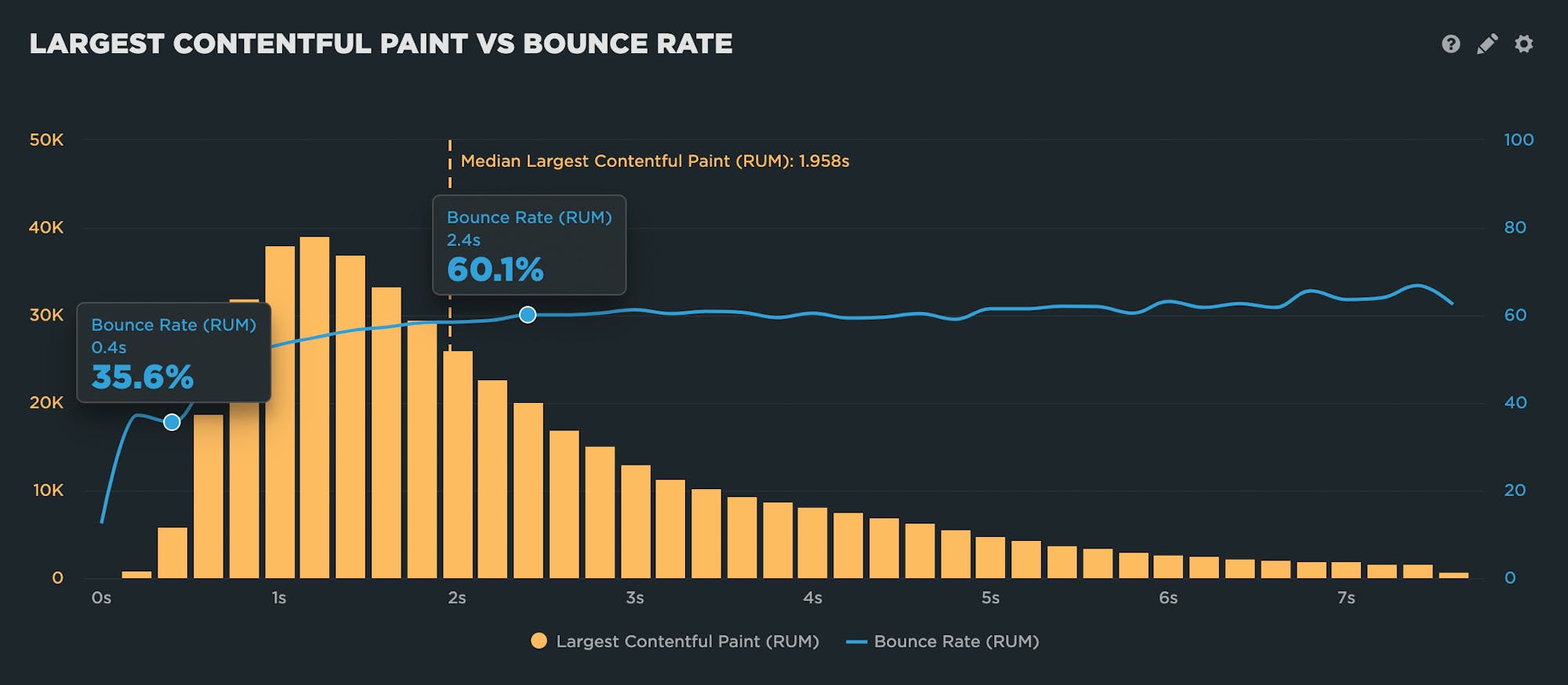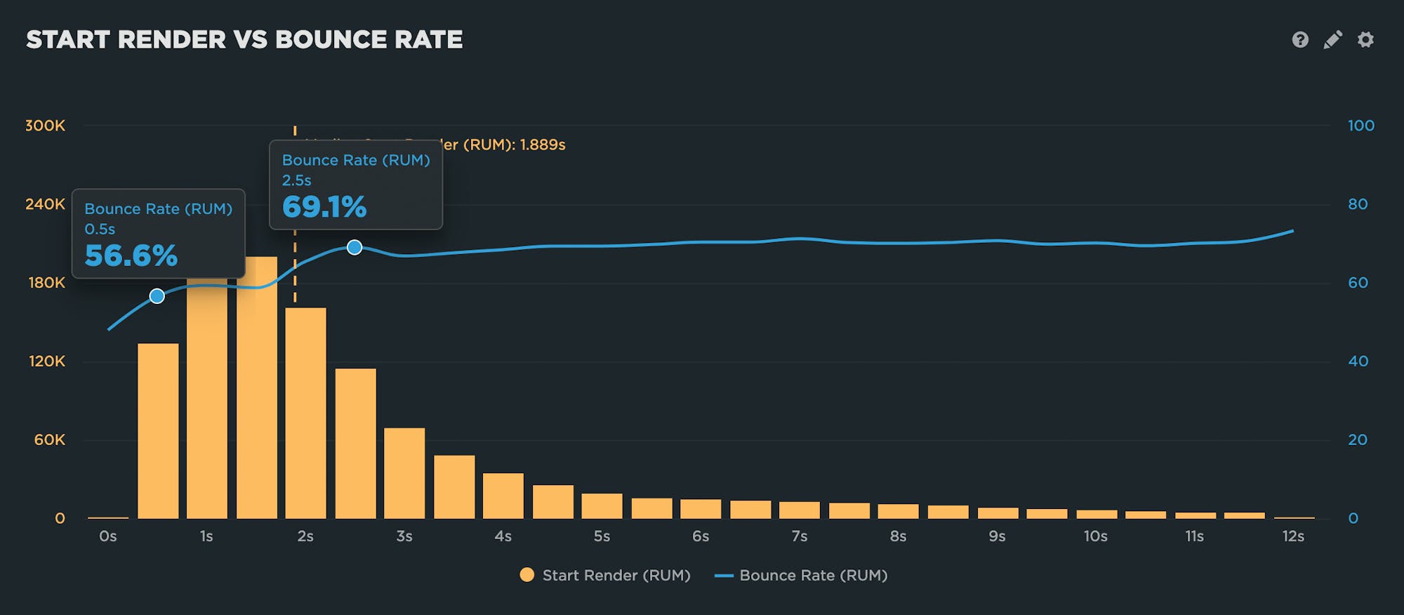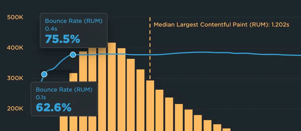 (You can also create correlation charts that show the relationship between performance metrics and business metrics, such as conversion rate and cart size, but bounce rate is easier to measure right out of the box with most RUM tools.)