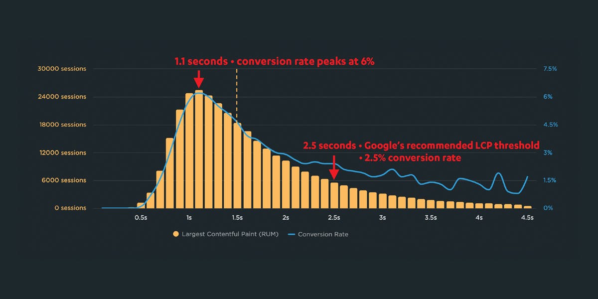 The performance plateau is the point at which changes to your website’s rendering metrics (such as Start Render and Largest Contentful Paint) cease to matter because you’ve bottomed out in terms of business and user engagement metrics.